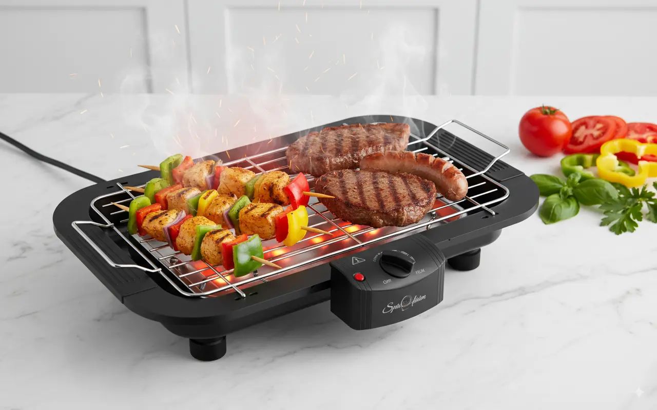 Ce grill électrique est idéal pour partager un moment convivial sans charbon ni fumée. Facile à utiliser, il chauffe rapidement et vous permet de cuire viandes, saucisses, poissons ou brochettes de légumes avec une cuisson maîtrisée. Léger et pratique, il se pose directement sur la table et se nettoie en quelques minutes. Parfait pour réussir vos grillades maison ou préparer des brochettes façon mauricienne, même à l’intérieur.
